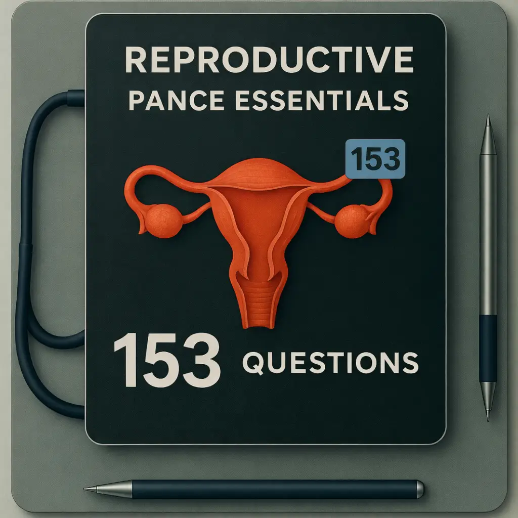 Gain confidence in reproductive medicine with 153 focused PANCE questions spanning routine care, high-risk obstetrics, and urgent gynecologic presentations.